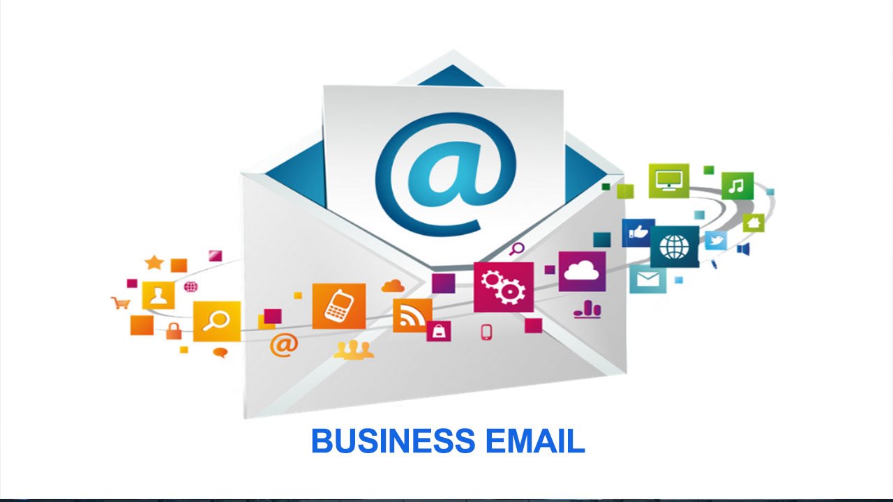 Business email uses your domain name for communication (e.g., [info@yourcompany.com](mailto:info@yourcompany.com)).
